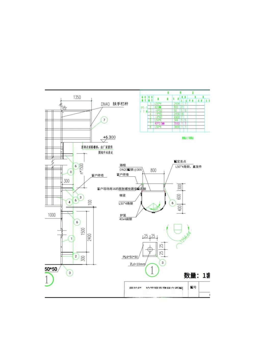 உட்பொதிக்கப்பட்ட பாகங்கள்: ஏணி பொருத்துதல்கள் விரிவாக்க போல்ட்கள் (M16 அல்லது பெரியது) அல்லது உட்பொதிக்கப்பட்ட எஃகு தகடுகளைப் பயன்படுத்தி இணைக்கப்பட வேண்டும். உட்பொதிக்கப்பட்ட எஃகு தகடு குறைந்தபட்சம் 10 மிமீ தடிமனாக இருக்க வேண்டும், நங்கூரம் கம்பி விட்டம் குறைந்தது 12 மிமீ இருக்க வேண்டும், மற்றும் உட்பொதிக்கப்பட்ட ஆழம் குறைந்தது 150 மிமீ இருக்க வேண்டும்.