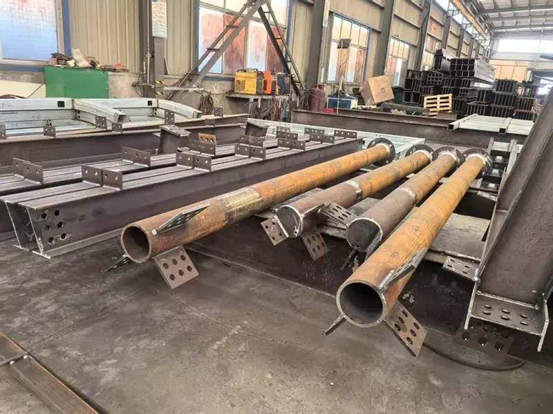 வெட்டு, வெல்டிங், துளையிடுதல் போன்றவற்றின் மூலம் வடிவமைப்பு வரைபடங்களின்படி எஃகு முன்னரே தயாரிக்கப்பட்டுள்ளது. எடுத்துக்காட்டாக, எஃகு விட்டங்களை உருவாக்கும் போது, ஃபிளாஞ்ச் பிளேட் மற்றும் வலைத் தகடு ஆகியவற்றுக்கு இடையிலான இடைவெளி, வெல்டிங் தரம் போன்றவை விவரக்குறிப்புகளின் தேவைகளைப் பூர்த்தி செய்ய வேண்டும். பதப்படுத்தப்பட்ட கூறுகள் எண்ணப்பட்டு எளிதான போக்குவரத்து மற்றும் ஆன்-சைட் சட்டசபைக்கு குறிக்கப்பட்டுள்ளன.