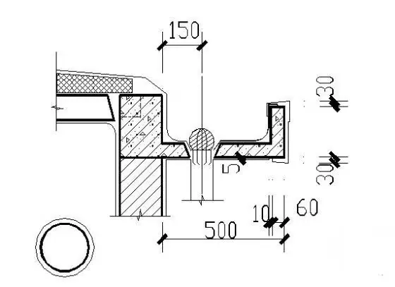 கூரையின் மேல்தளத்திற்கு மேலே ஒரு ஒளிரும் ஒன்றை நிறுவலாம். சாக்கடையின் கீழ் முனையானது கூரையின் மேல்தளத்திற்கு கீழே வைக்கப்பட வேண்டும் மற்றும் முத்திரை குத்த பயன்படுகிறது. மழைநீர் எழுச்சிகளை இணைப்பதற்காக, சாக்கடையின் அடிப்பகுதியில் வடிகால் துளைகள் அமைக்கப்பட வேண்டும்.